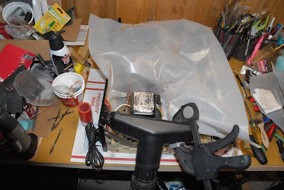 Had to get really creative when I was removing the rust so I didn't blow iron oxide all over the place: